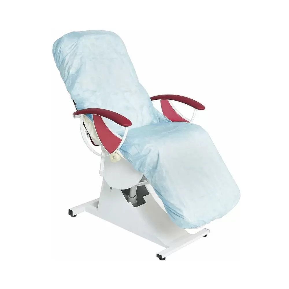 - Чехол надежно закрепляется на кушетке, массажном столе или педикюрном кресле благодаря резинке, а также дополнительным завязкам с двух сторон изделия.