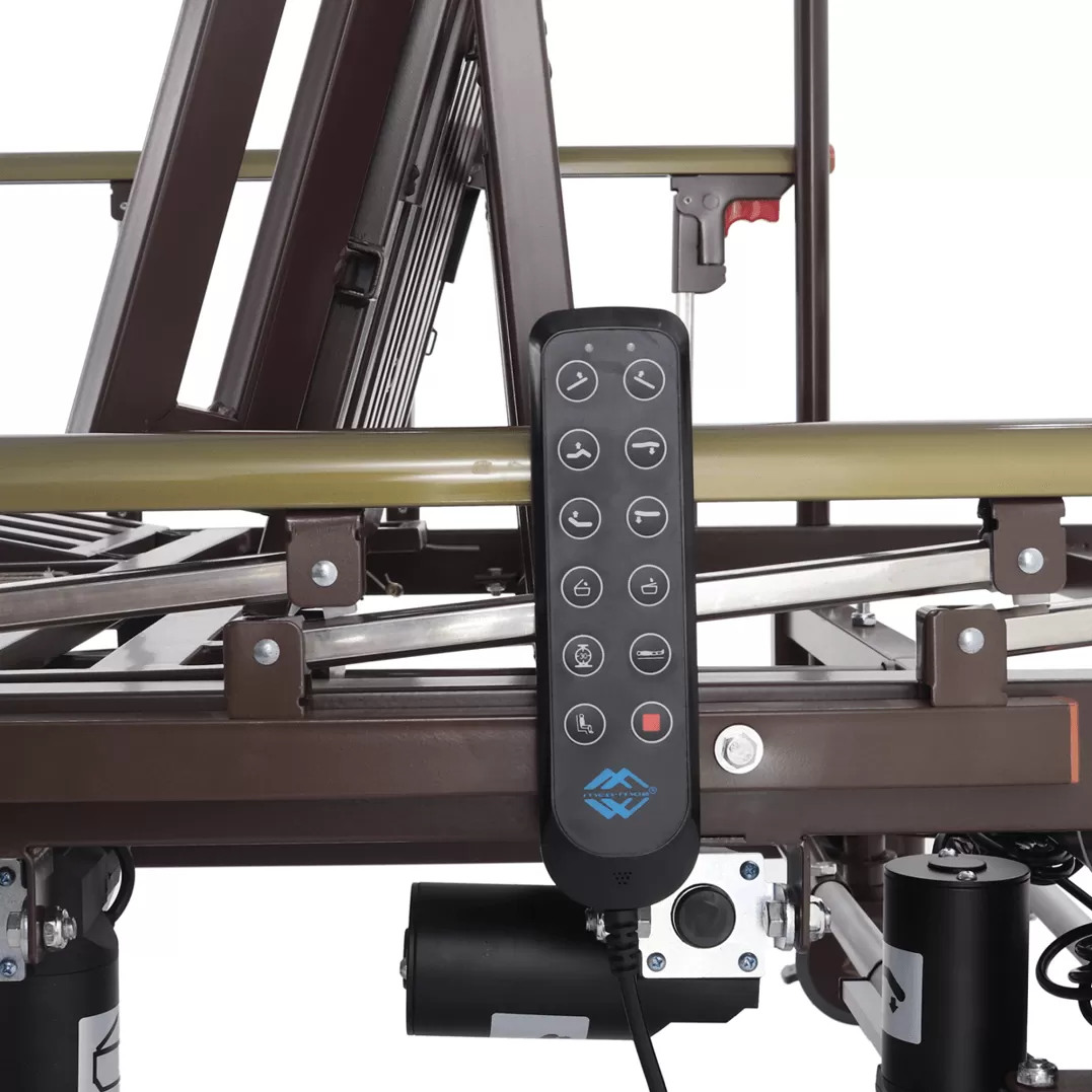 Есть возможность регулировки ножной, спинной, коленной секций, встроена функция подъема головы и ног.