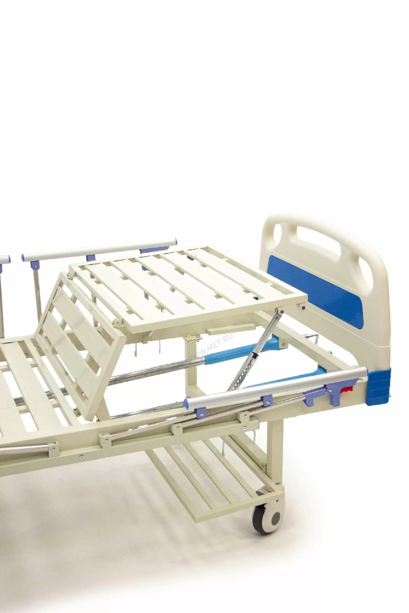 Медицинская четырехсекционная кровать с независимыми червячными регулировками изголовья и ножных секций. Кровать MET NV M20 обладает великолепным качеством исполнения, оснащена 4 складными боковыми ограждениями, обеспечивающими дополнительный комфорт и безопасность, быстросъёмными торцевыми спинками из ABS-пластика и всеми остальными конструктивными решениями, эффективно участвующими в выводе вашего стационара на новый уровень как по результативности проводимой терапии, так и по комфорту рабочих условий для персонала.