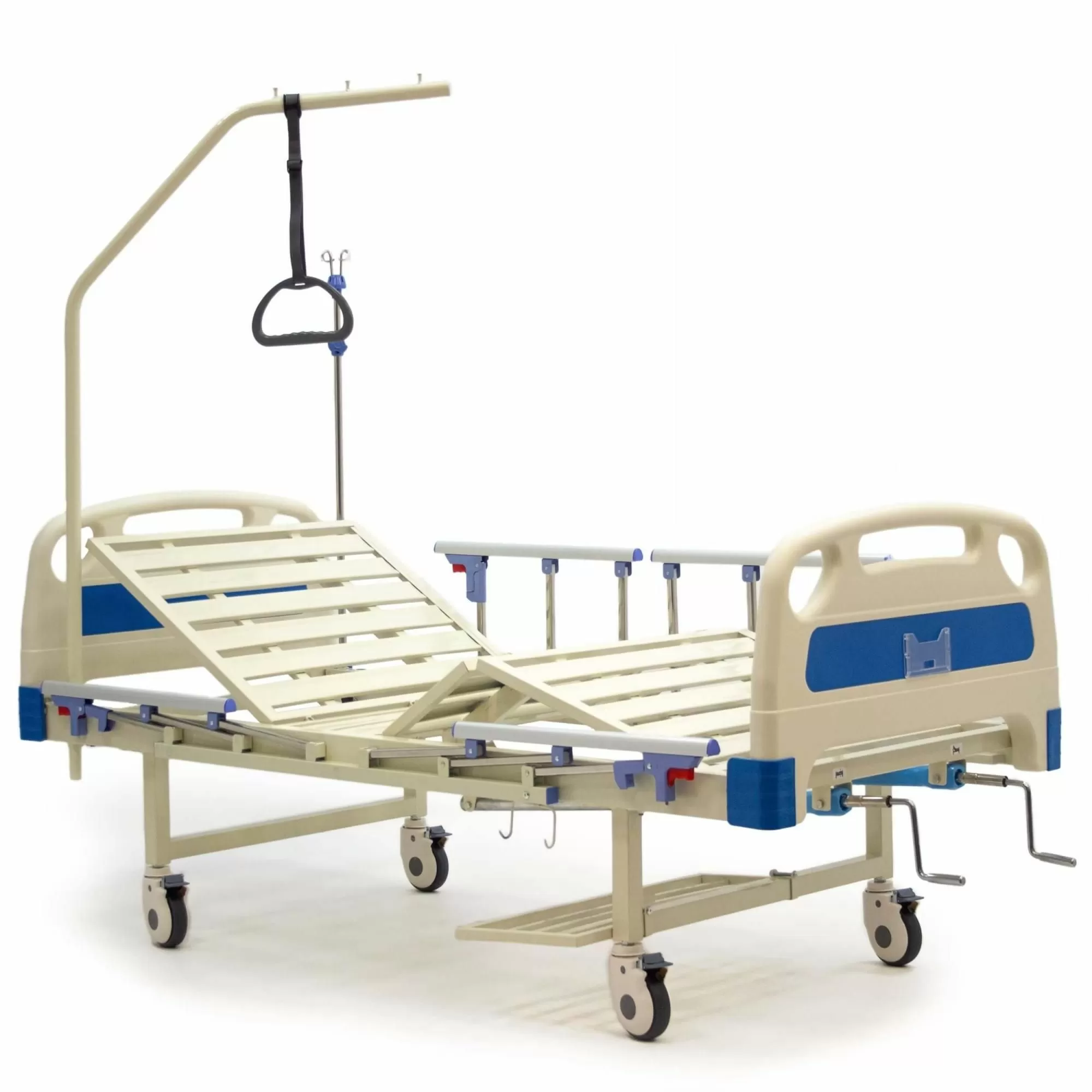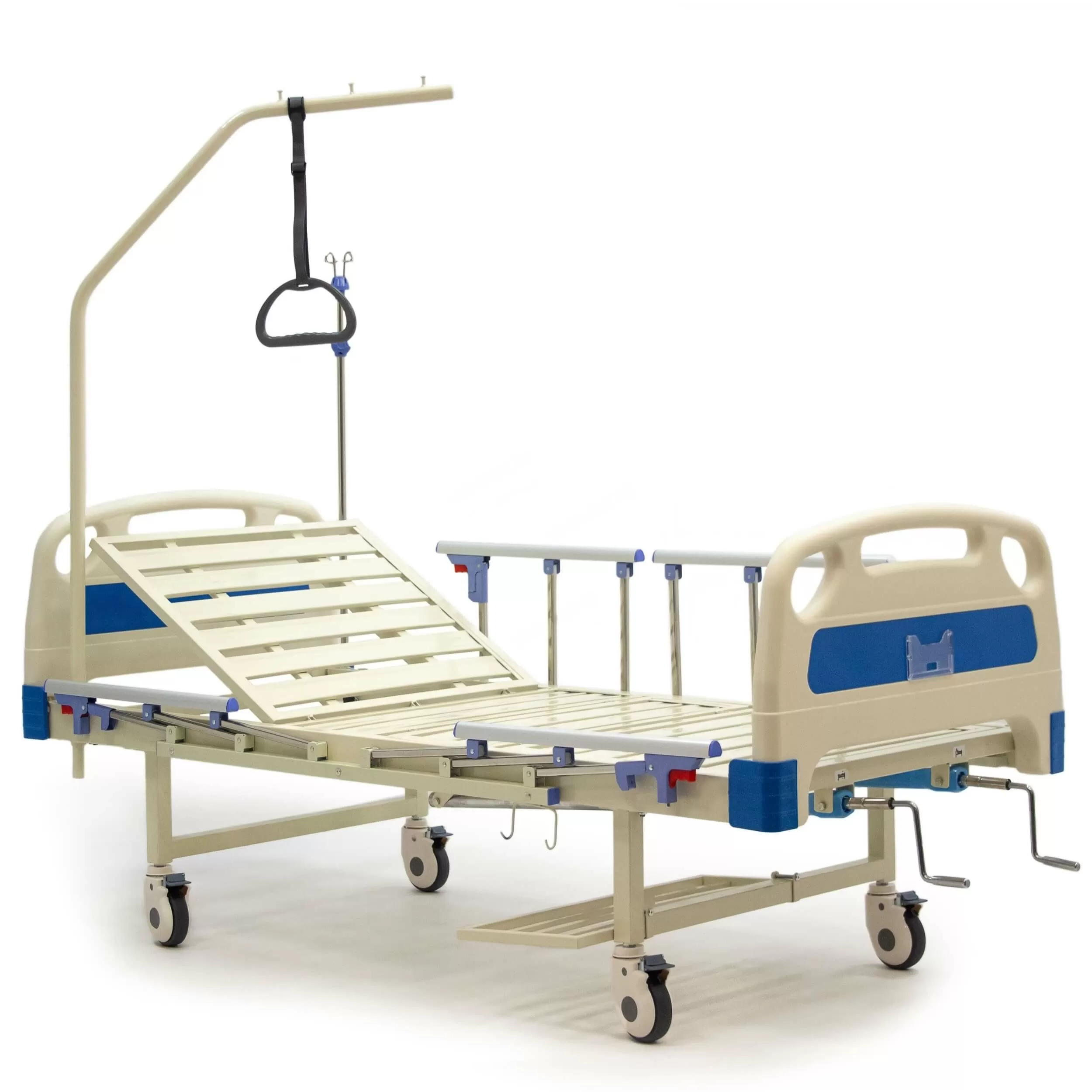 Кровать 4-х секционная, снабжена винтовыми механическими приводами регулировки угла наклона спинной секции и угла наклона ножной секции.
