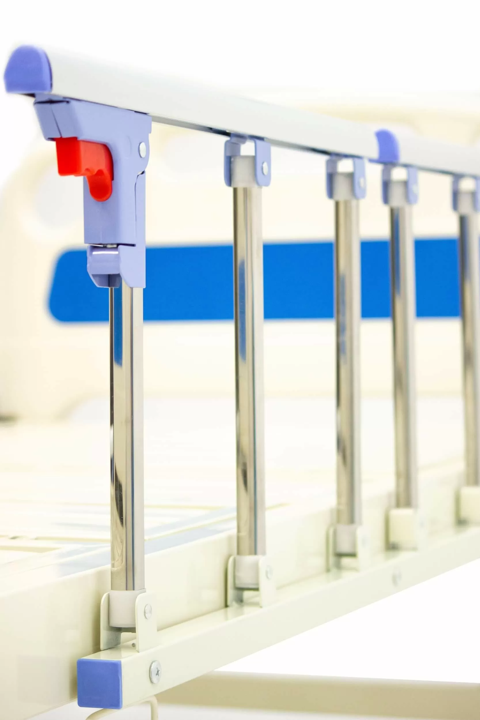 Боковые ограждения 4 шт. – складные, алюминиевые с пластиковым покрытием и ярким удобным фиксатором, по два с каждой стороны. С обеих сторон кровати можно легко откидывать боковое ограждение (целиком или наполовину), что дает дополнительные комфорт и безопасность.