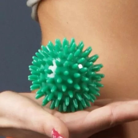 Мяч представляет собой сферу, на поверхности которой находятся игольчатые массажные элементы. Их воздействие характеризуется комплексным эффектом: улучшается локальное кровообращение, устраняется мышечное напряжение, нормализуется эмоциональное состояние и обеспечивается легкий релаксирующий эффект.Мяч произведен из синтетического полимерного материала – поливинилхлорида. Это – гигиеничный, химически нейтральный материал. Он устойчив к химическому действию щелочей, масел, широкого перечня кислот и растворителей. Кроме того, он характеризуется устойчивостью к влиянию низких температур (до -15°C) и значительной стойкостью к нагреву (до +65°С).