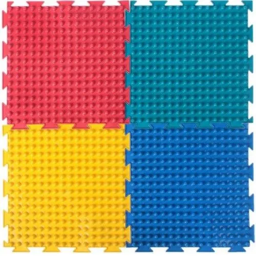 Орто — это развивающее и профилактическое ПВХ-покрытие. Оно представляет собой квадратные модули с бугристой поверхностью.