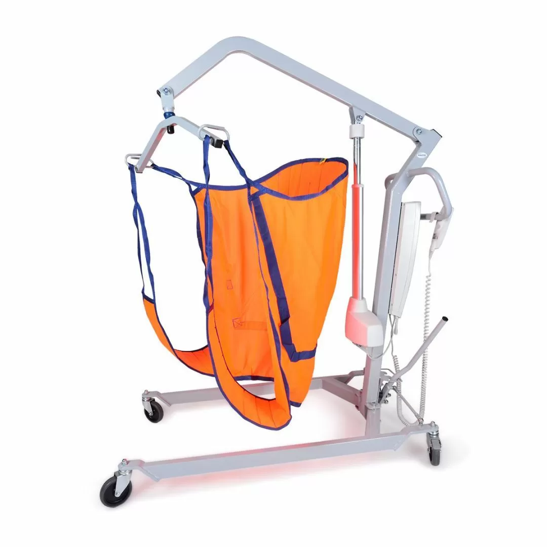- Перемещение, подъем и опускание человека с нарушением функций опорно-двигательного аппарата с помощью подъемника ИПП-2Э с электроприводом LINAK снабженным аккумулятором, в универсальном подвесе.