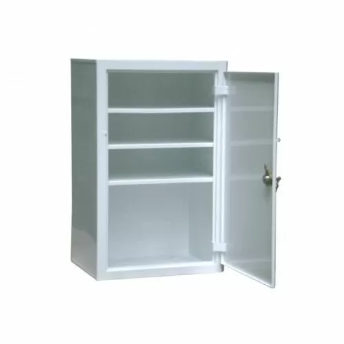 Шкаф одностворчатый, однодверный, изготовлен из листового проката. Корпус шкафа имеет отверстия в днище, закрытые фальшпанелью для крепления к полу. Дверь оборудована замком и устройством для пломбирования. Все поверхности имеют полимерно-порошковое покрытие. Поставляется в собранном виде.