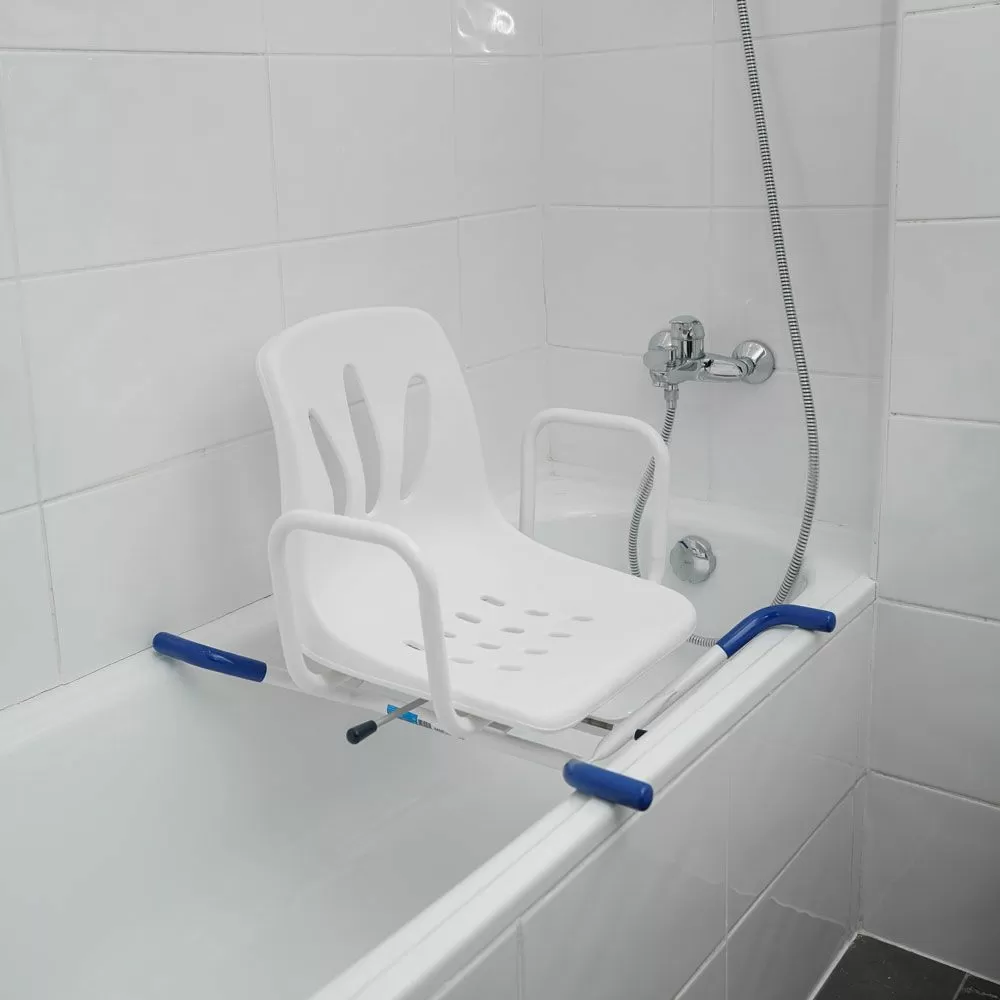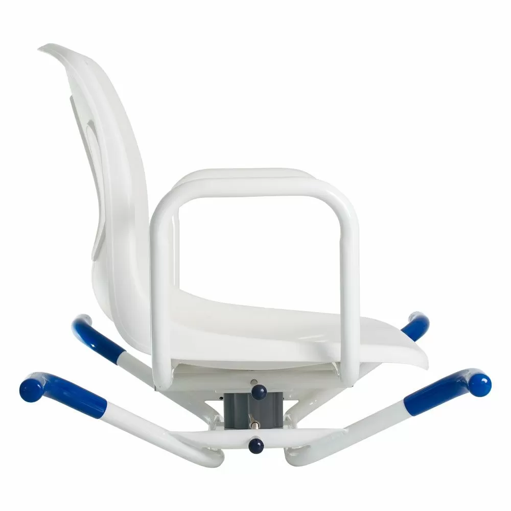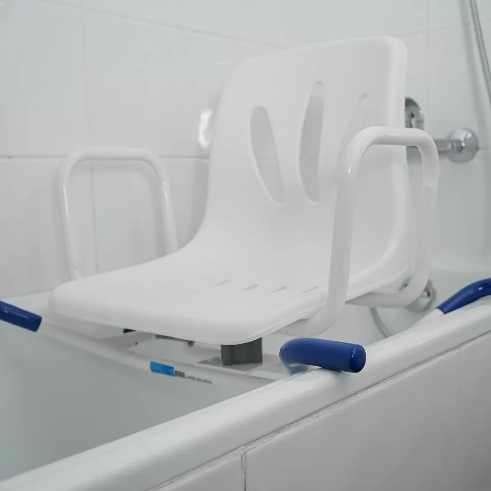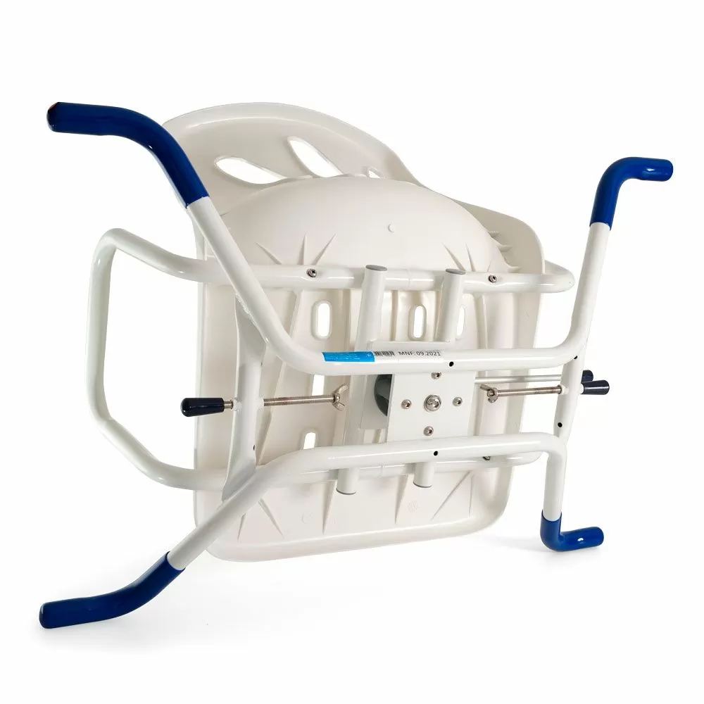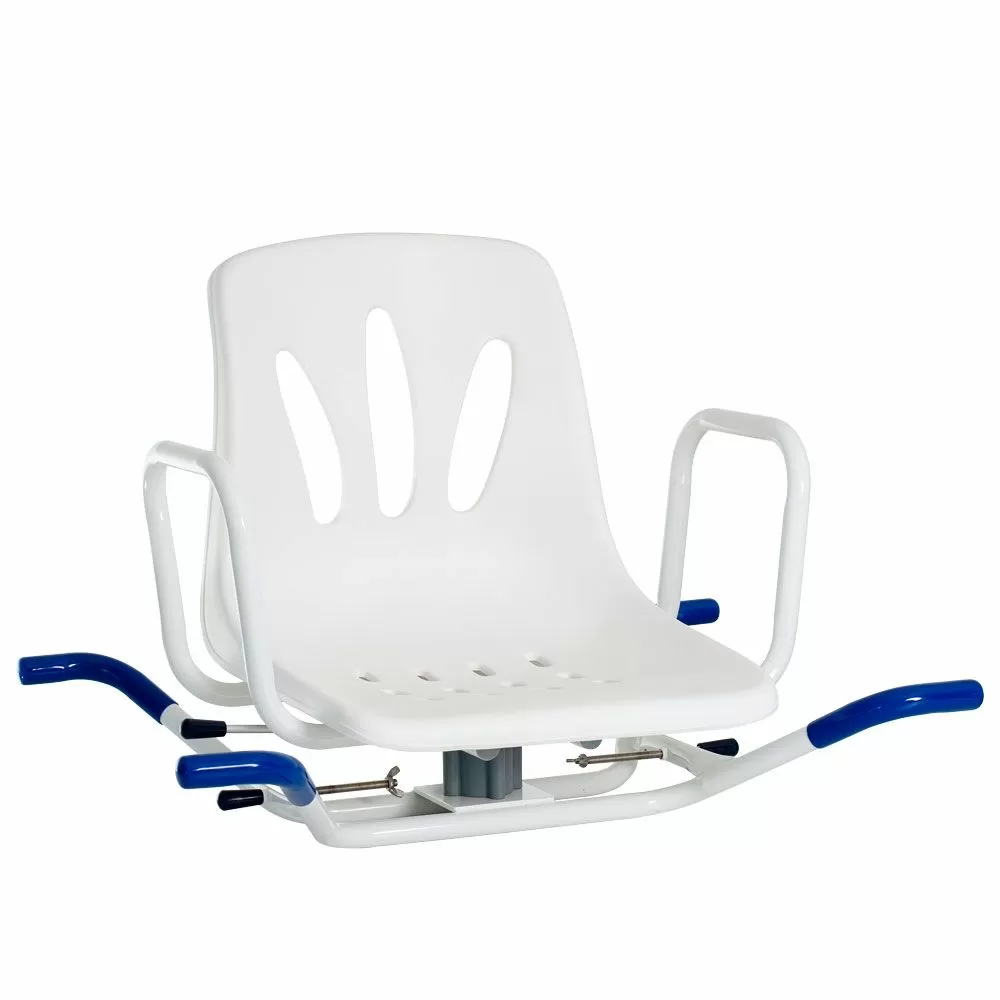 Сиденье снабжено поворотным механизмом, с помощью которого можно развернуть его на 90 градусов. Такой механизм делает использование сиденья еще легче и безопаснее: для того чтобы сесть, нужно будет повернуть сиденье к себе, сесть, приподнять ноги и развернуться в ванну. Усилий потребуется еще меньше, чем с обычными сиденьями. Есть фиксаторы положения, которые предотвратят спонтанные повороты кресла.