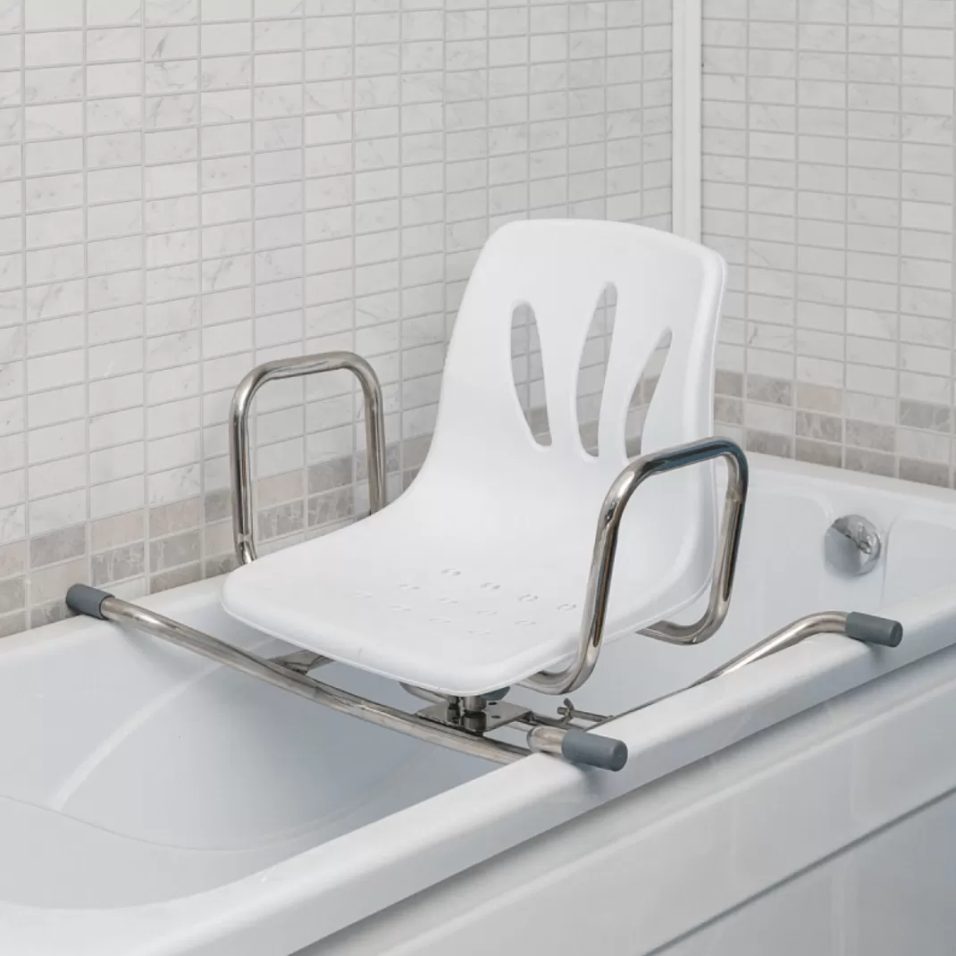 Поворотное сиденье для ванны LUX 460 предназначено для облегчения проведения гигиенических процедур людям с ограниченными двигательными возможностями и престарелого возраста. Сиденье поворачивается на 360°, тем самым упрощая процесс пересаживания в ванну и обратно. Сиденье устанавливается на бортах ванны и фиксируется механическими упорами для большей устойчивости.