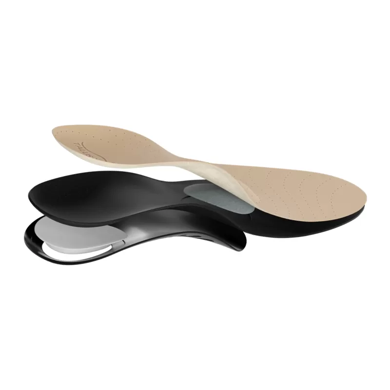 - Крупный плотный пяточный амортизатор, продленный со стороны внутреннего свода стопы, уменьшает болевой синдром в области пятки