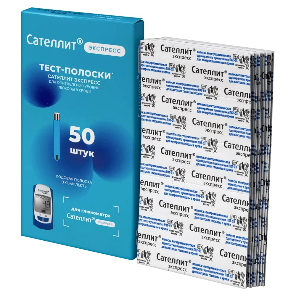 - Тест-полоски Сателлит Экспресс для глюкометров Сателлит Экспресс и Сателлит Online предназначены для точного определения уровня глюкозы в цельной капиллярной крови.
